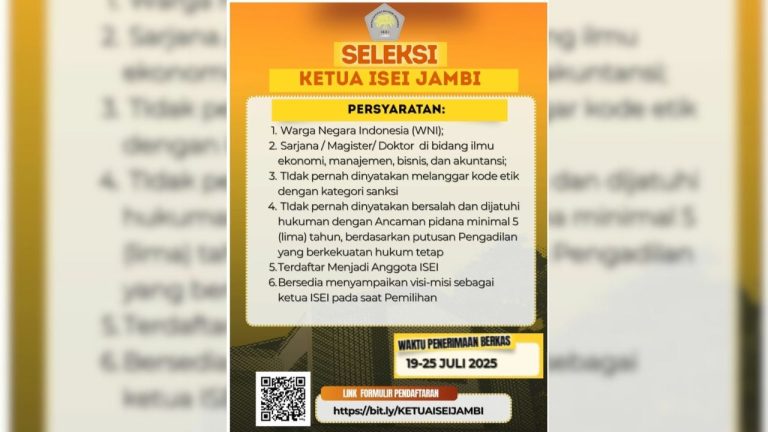 Kota Jambi PENGUMUMAN PENDAFTARAN CALON KETUA ISEI PROVINSI JAMBI adminbacahukum 21 Juli 202521 Juli 2025