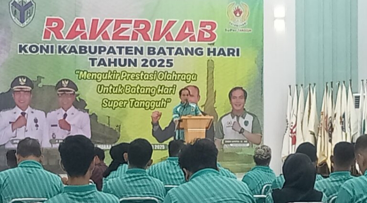 BacaHukum.com, Batang Hari – Ketua Komite Olahraga Nasional Indonesia (KONI) Kabupaten Batang Hari, Tandri Saputra, menekankan pentingnya pengembangan atlet asli daerah guna meningkatkan prestasi olahraga lokal. Hal itu disampaikan dalam Rapat Kerja KONI Kabupaten Batang Hari (Rakerkab) yang digelar di Gedung Pemuda setempat, Senin (29/12/2025).